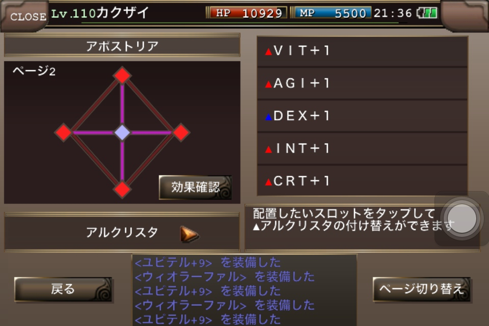 HPは1000ちょい上昇、回避とmatkは100ほど減少