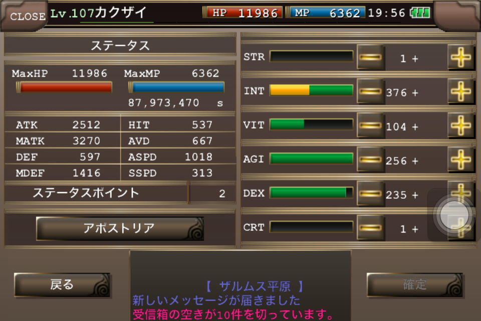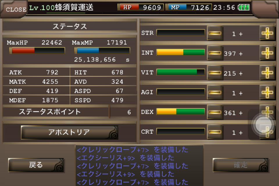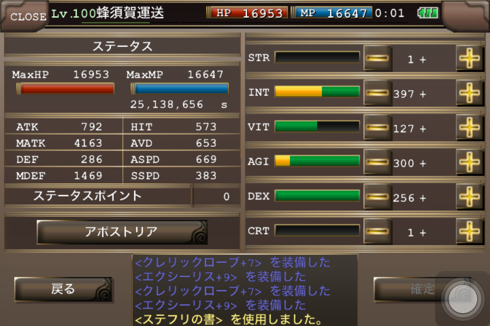 将来的にはライン振りを撤廃、ADを300近くまで上げて絶対回避,魔法回避に特化させた装備にしようかと検討中(使えるかは別として)