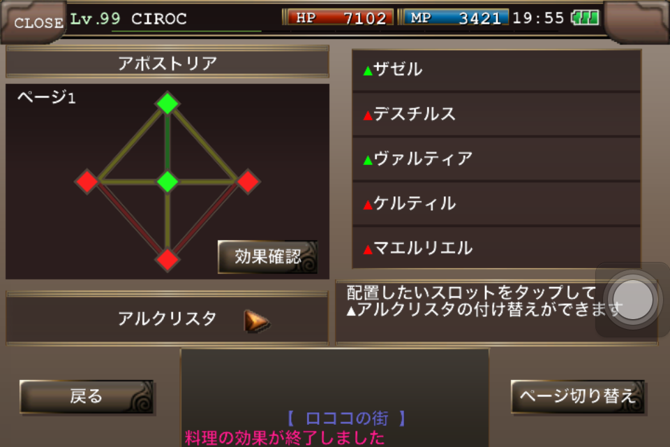 アルクリは狩りとボスパレットを統一(画像参照)